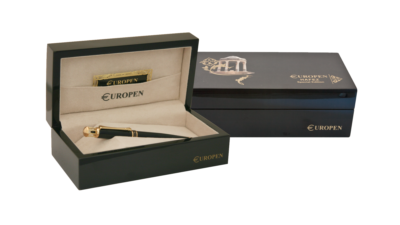 - در داخل جعبه یک عدد پلاک فلزی قرار دارد که گواهی اصالت قلم می باشد و شماره منحصر به فرد قلم روی آن درج شده و منزله سند مالکیت قلم در اختیار مالک قلم قرار می گیرد.