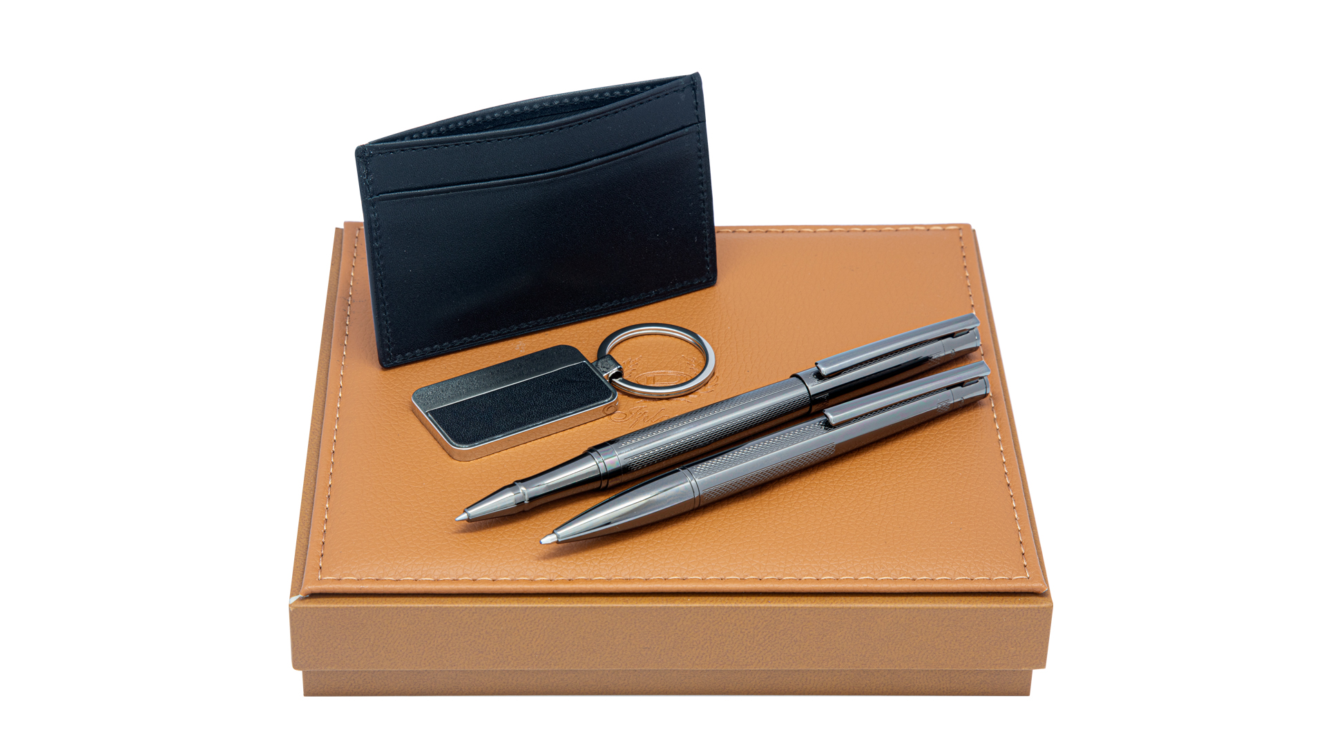 - ست خودکار و روان نویس و جاکلیدی و کیف کارت اعتباری چرمی