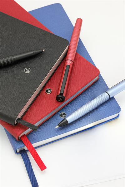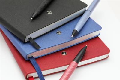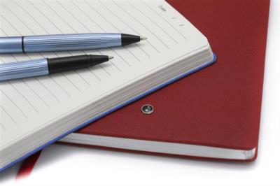 - دفتر لب نقره ای با جلد همرنگ قلم 80 برگ با کاغذ خط دار و داران روبان نشان