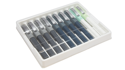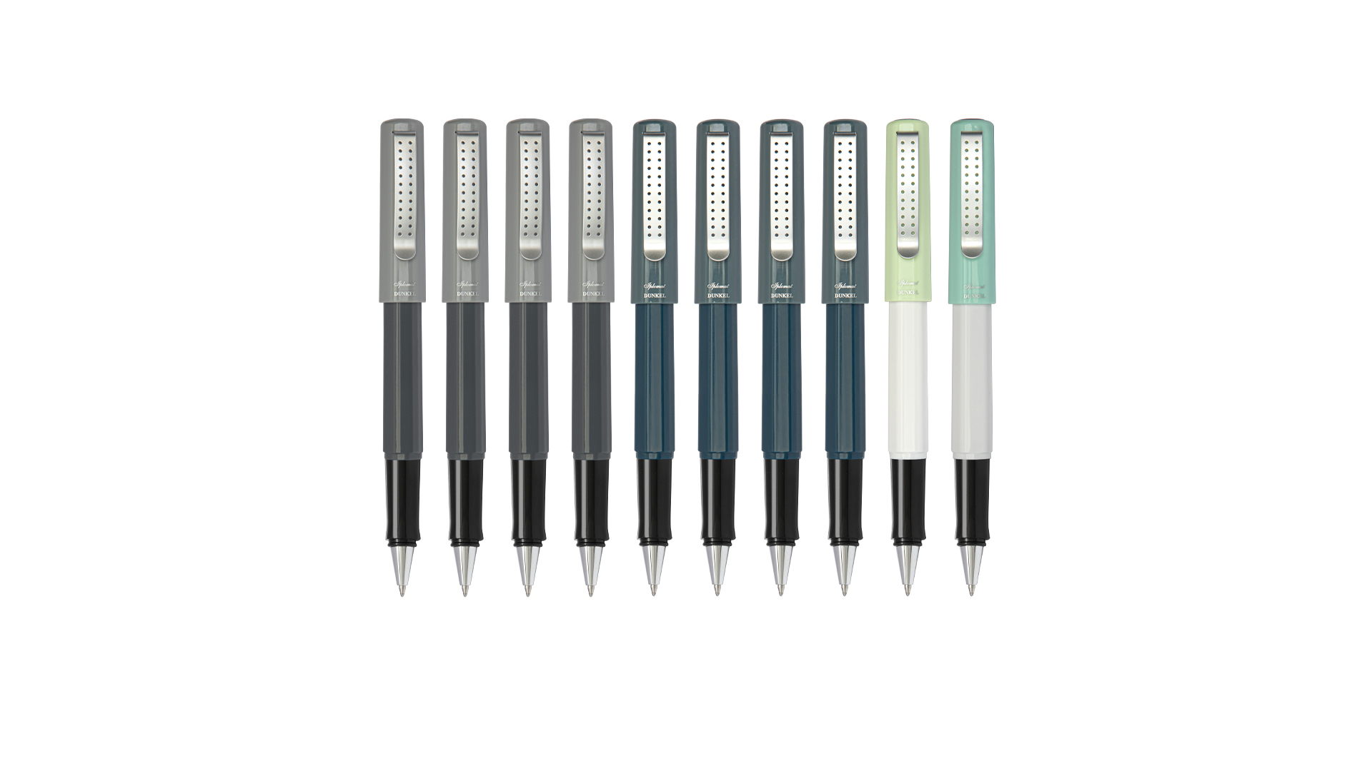رنگ بدنه: 10 عدد روان نویس در 4 رنگ (دودی 4 عدد، سورمه ای 4 عدد، فیروزه ای 1 عدد، سبز روشن 1 عدد)